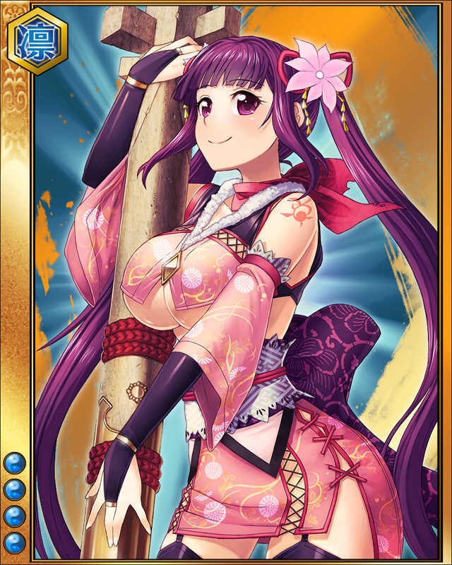 | コメント | 「ふぅ……すっきりしちゃいましたぁ」 自ら編み出した霞流棒術と6尺越えの樫棒を携えて戦場を駆け廻った氏幹を人々は畏怖を込めて鬼真壁と呼んだと言う。 |