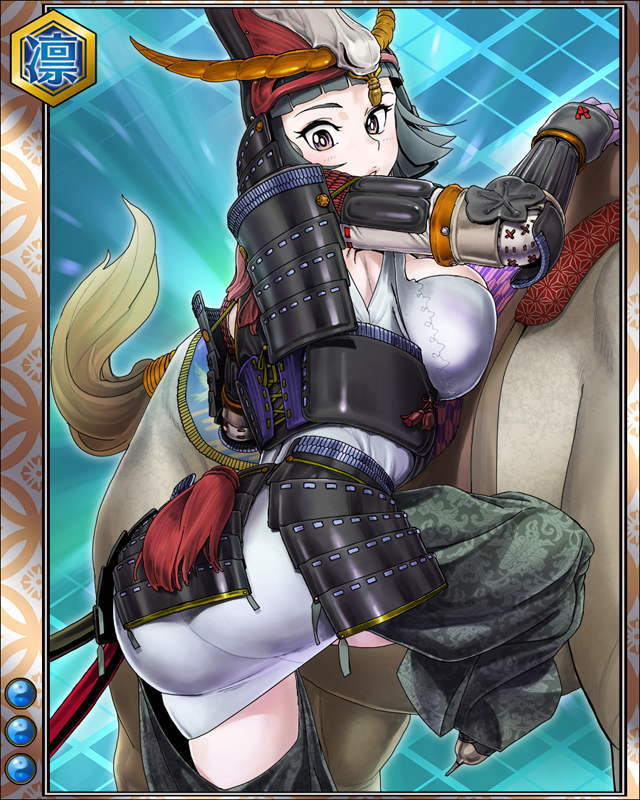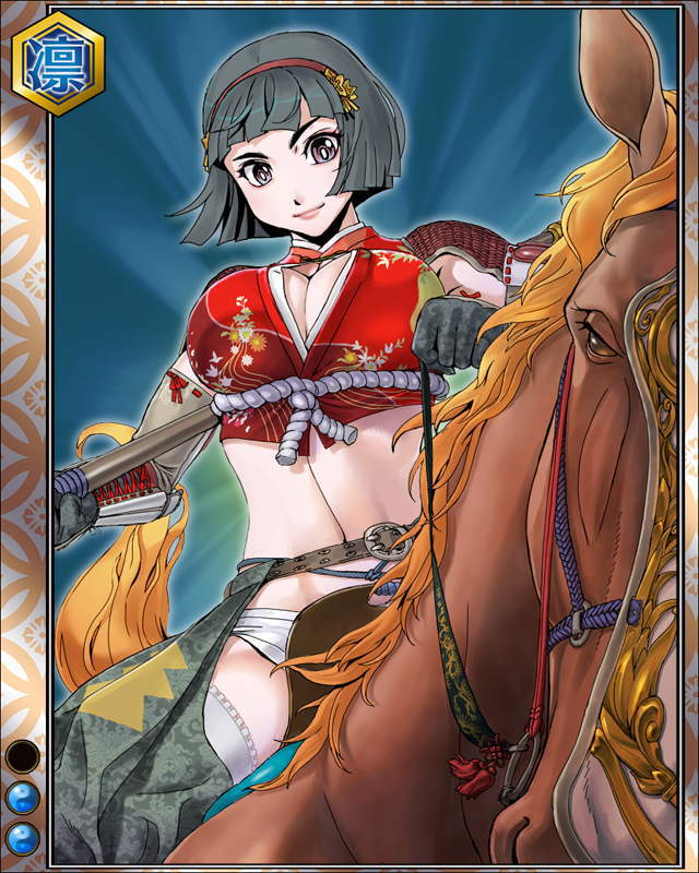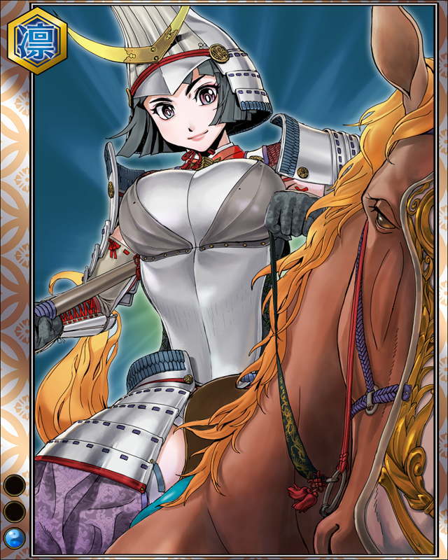 | コメント | 「アタシはただ風のように走りたいだけさっ」 武田家の勇将。長篠合戦後、 織田軍に対し籠城戦を展開するが兵を助けるために開城した。 | |||