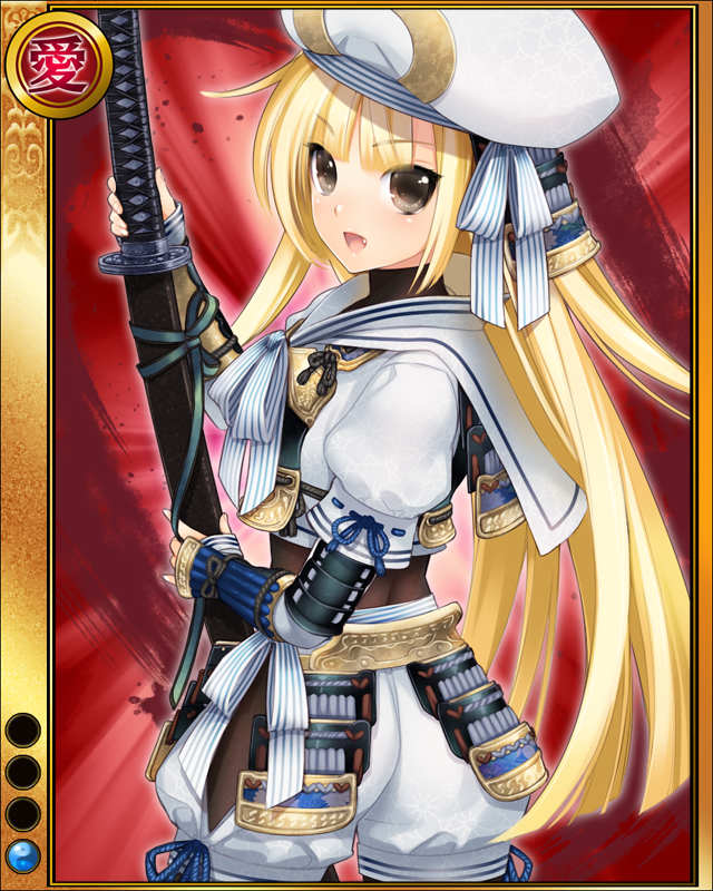 | コメント | 「この宗茂・・・・・・出陣しちゃうぞ!!」 高橋紹運の実子、立花道雪の養子。偉大な 両親の教えを守り、豊臣秀吉に忠義、武勇 は本多忠勝に並ぶ鎮西一と称される程 だった。 | |||