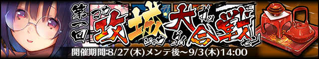 ※「攻城大合戦」に参加するには、ギルドに加入している必要があります。 ※イベント内容及び期間は予告なく変更になる場合があります。 ※8/27メンテ~9/3 14:00の期間はギルドの脱退、解散、除名は出来ません。