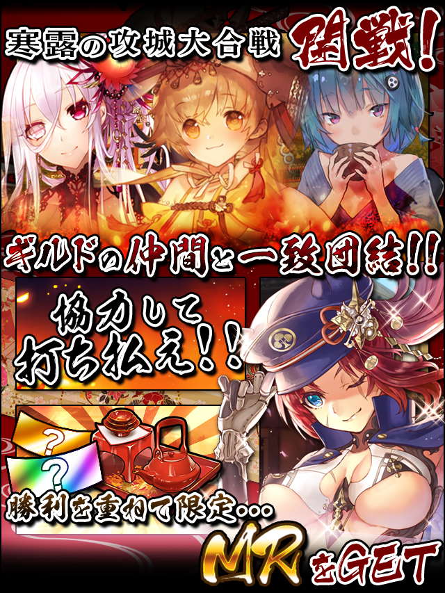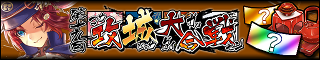 貢献度:50 のぼり×1 貢献度:100 剣術書【参】 貢献度:250 計略の秘伝書【四】 貢献度:500 個人用回復桃×1 貢献度:700 のぼり×1 貢献度:1000 Gガチャの種【四】 貢献度:1500 金の小槌ガチャチケット×1 貢献度:2000 のぼり×1 貢献度:3000 変化の巻物×1 貢献度:4000 皆伝書【参】 貢献度:5000 誓盃×1 、剣術書【五】