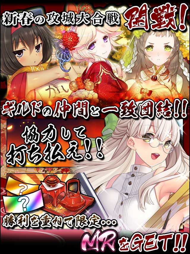 みの吉「姫さま!!今年も張り切っていきますよ、猪のごとく!!城攻め初めです!!」 咲姫「気合が入っているのはいいことじゃな、いの吉……いや、みの吉や」 みの吉「ええ、おみくじでも-城攻め:果報は寝て待て-と出ましたからね!!行けますよ、今年は!!」 咲姫「おみくじにそんな項目あったかのう……お主は城攻め初め、勝利で飾るのじゃ!!」