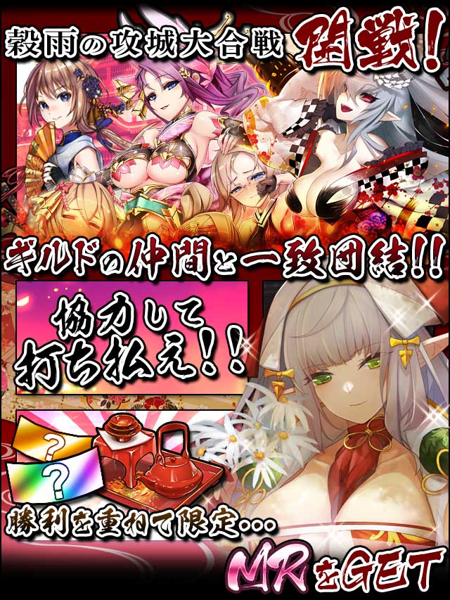 貢献度:50 のぼり×1 貢献度:100 剣術書【参】 貢献度:250 計略の秘伝書【四】 貢献度:500 個人用回復桃×1 貢献度:700 のぼり×1 貢献度:1000 Gガチャの種【四】 貢献度:1500 金の小槌ガチャチケット×1 貢献度:2000 のぼり×1 貢献度:3000 変化の巻物×1 貢献度:4000 皆伝書【参】 貢献度:5000 誓盃×1 、剣術書【五】