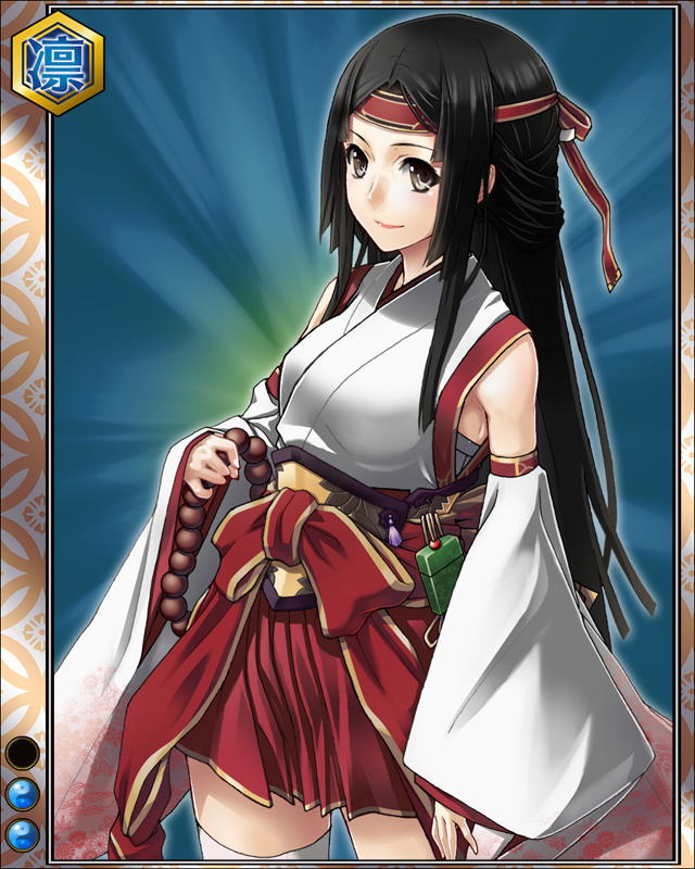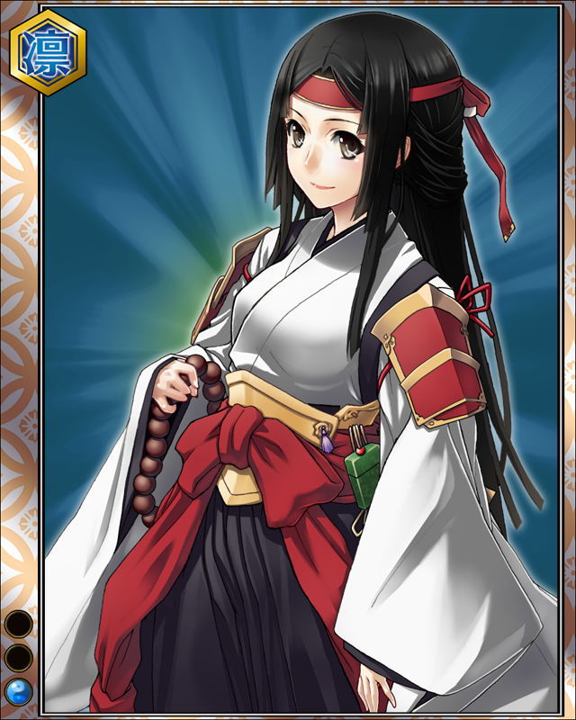 | コメント | 「あらっ……こう言う時はじっくりと……ね??」 ヤマト国の武将。信長に臣従するも、死後、 豊臣秀吉と明智光秀どちらかに付くかを傍観し続けた。 |