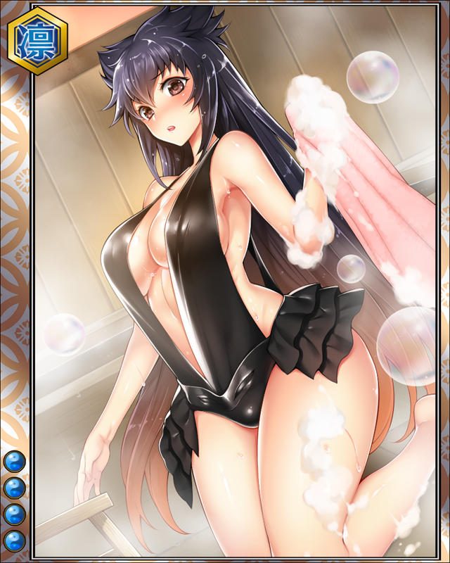 | コメント | 「ん、どうかしたかの??背中を洗うだけじゃが」 『黒漆塗燕尾形兜』を被る武勇の将で知られる氏郷は家臣を特に大切にしており、自ら湯を沸かした風呂で持て成す程だった。 |