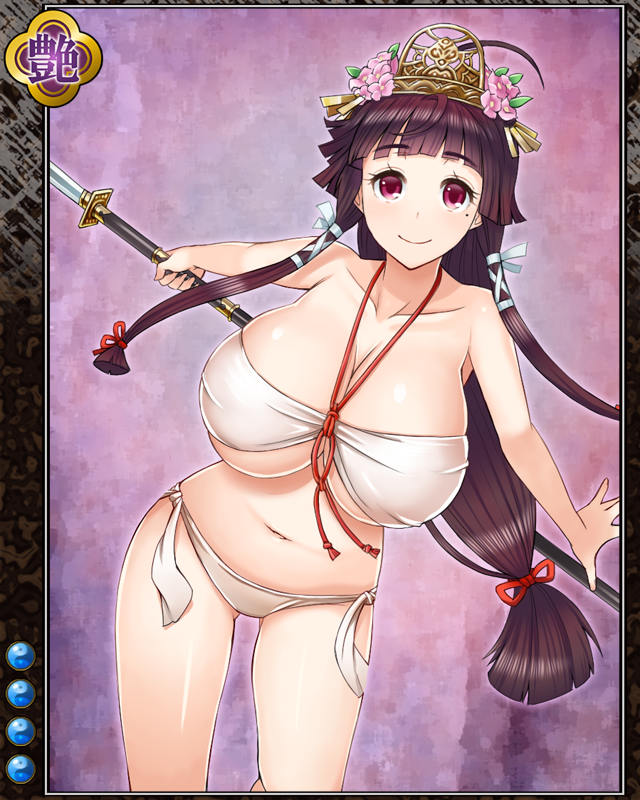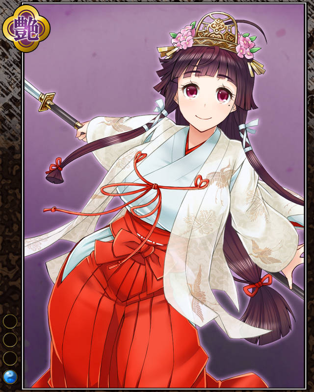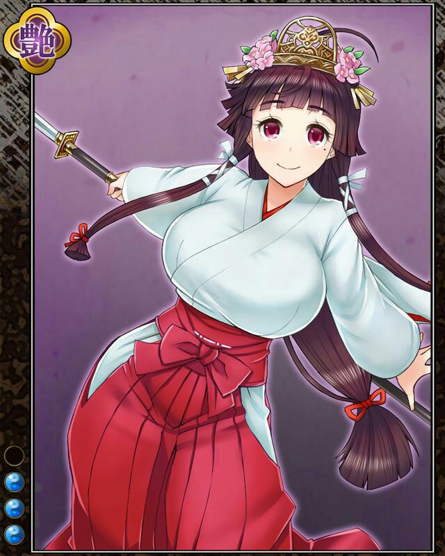 | コメント | 「みてのとぉりっ!!巫女だ!!」 元大祝家の巫女だと自称するが特に薙刀の 使い方がどう見ても武人そのもの。薙刀の 舞が得意と自称し、周囲はただ沈黙する。 | |||
