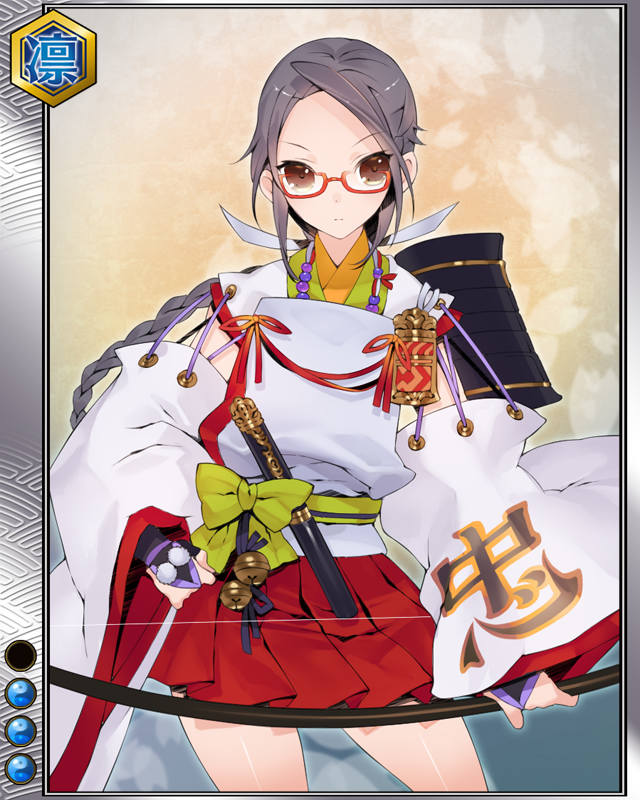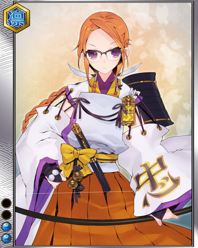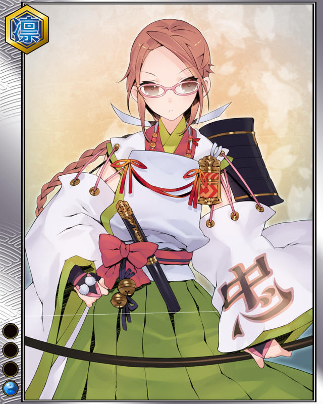 | コメント | 「……その大任、承った」 トサ国一宮神社の神主で妹と共に長宗我部 元親に仕えた。戸次川の戦いで戦死した長 宗我部信親の遺骸を交戦中の敵陣まで取 りに赴いた。 | |||