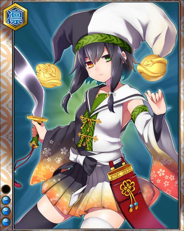 | コメント | 「これがボク……そう、二君の証」 斉藤道三の家臣。 道三と義龍との争いの際、二君に仕える意志を髪型で忠臣の矜持を示し、後の世に道化の名を知らしめた。 |