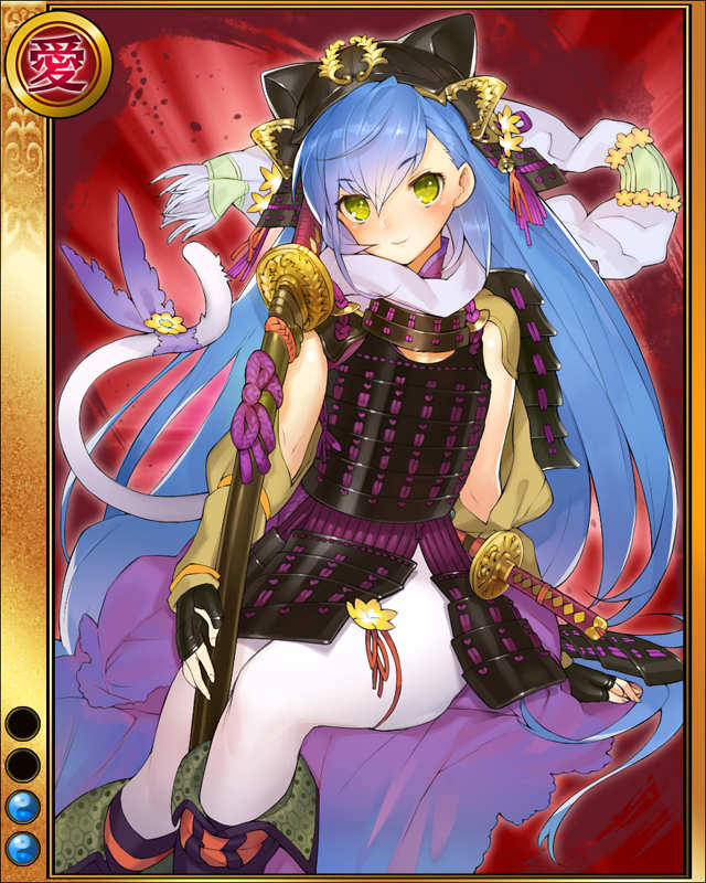 | コメント | 「ふにゃぁ……尻尾はぁ駄目にゃぁ……」 イマヤマの戦いでの絶対的不利を夜襲によって覆し、 勝利した直茂は大友本陣に残る杏葉紋を持ち帰り、 鍋島家の家紋とした。 | |||