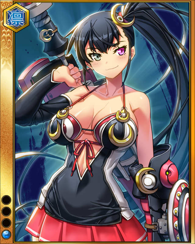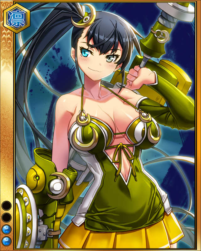 | 備考 | 大将か軍師にセットするとイベント「強者求む!偽巫女狩り!!」の武芸者出現率がアップする 3MAX 攻9372 防9086 知9086 4MAX 攻9574 防9282 知9282 | |||