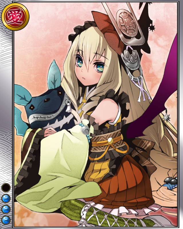 | コメント | 「これからは鬼若子と呼びなさぁい」 トサ国の大名。「姫若子」と言われていたが、 武勇を発揮して後は「鬼若子」と評された。 四国覇者となる。 |