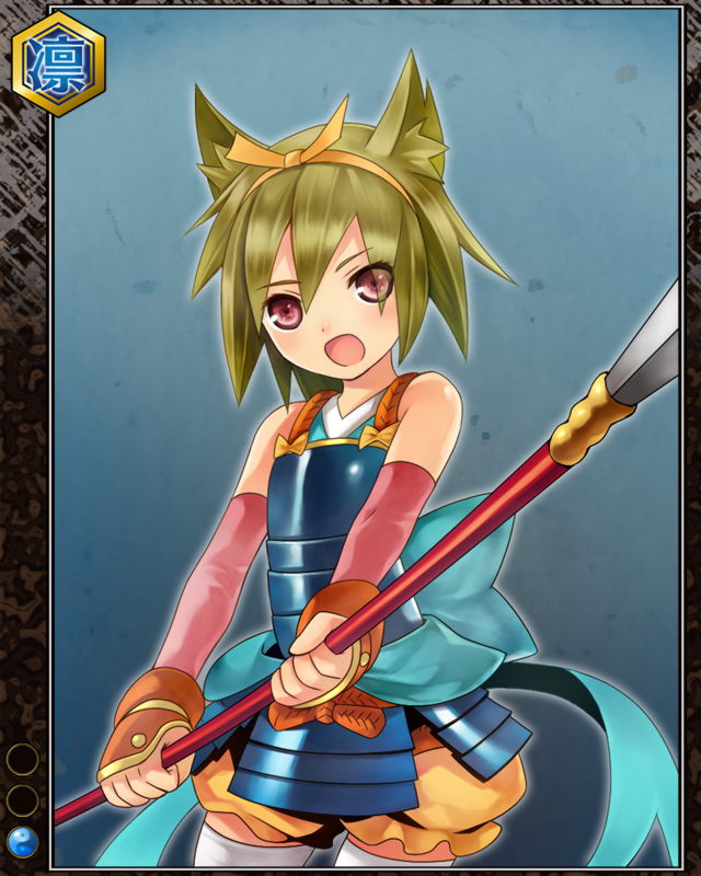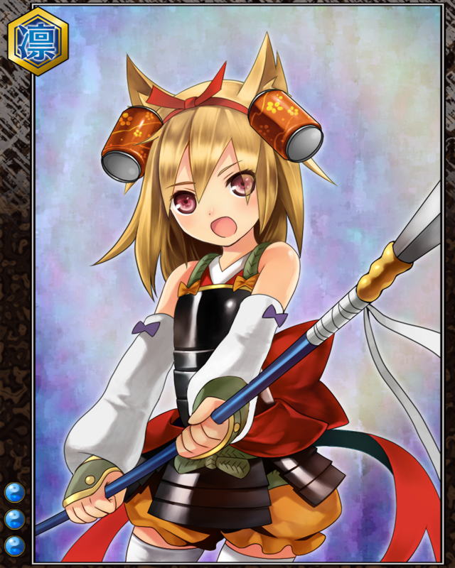 | コメント | 「長政さまのために鍛えた槍術っ!」 オウミ国、浅井氏に仕える。 長政のことを慕っており、 いつか振り向かせたいと思っている。 | |||