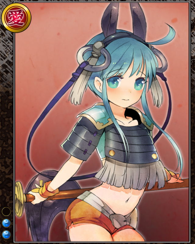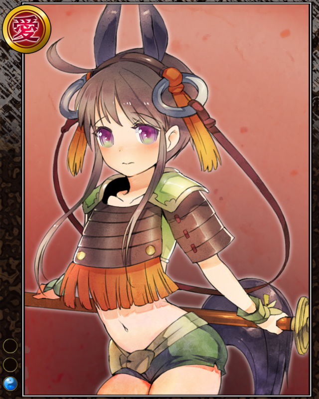 | コメント | 「山県さまっ!赤備えの勇猛を轟かせましょう!」 カイ国の生まれ。 武田家の「赤備え」として知られる山県隊に属する。 幼い頃から馬に乗って育った。 | |||