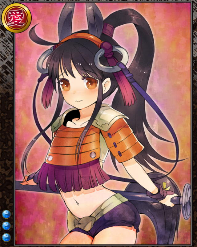 | コメント | 「山県さまっ!赤備えの力を見せつけてやりましょう!」 カイ国の生まれ。 武田家の「赤備え」として知られる山県隊に属する。 幼い頃から馬に乗って育った。 | |||