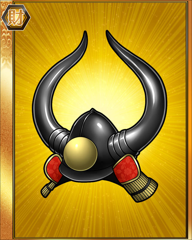黒塗りの水牛の角が豪壮たる気風を感じさせる兜。