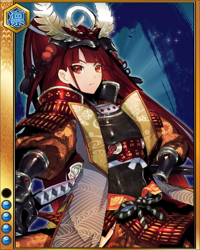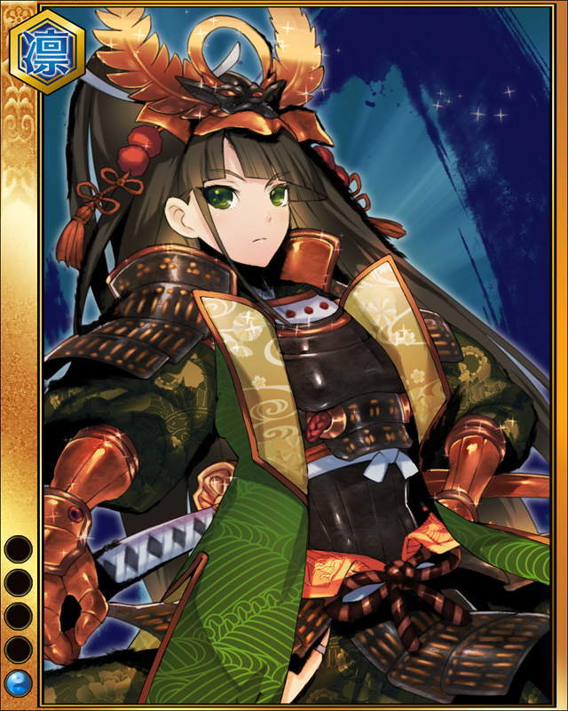 | コメント | 「我はただこの日を待っていた!!忍従晴らすのみ!!」 ミカワ国の武将。 幼少期は今川家の人質として過ごし、信長や豊臣の大活躍をただ耐え忍び、遂には天下統一を成し遂げた。 |