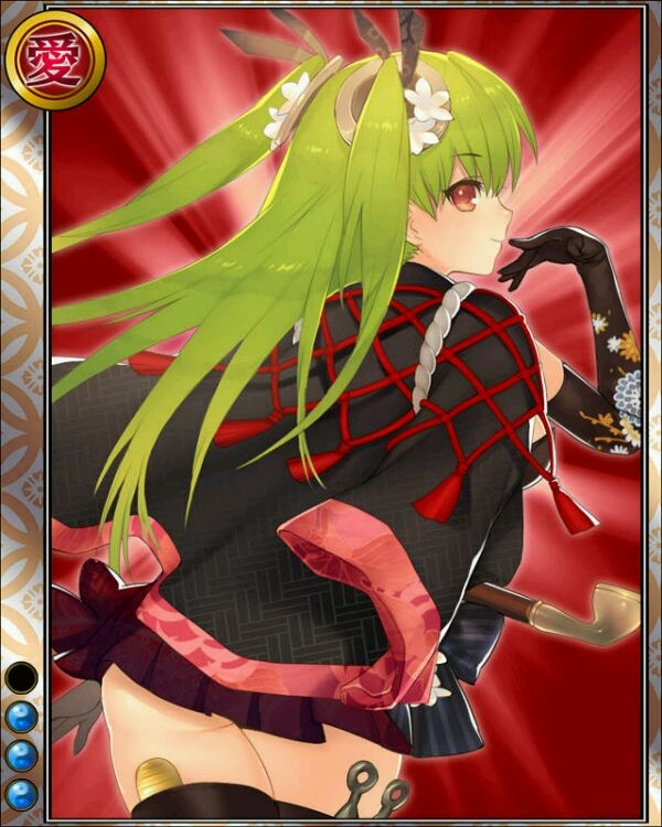 | 備考 | [春宵]石川五右衛門【四】に[喧嘩煙管]使用で進化可能 5MAX:攻4764 防3721 知4115 | |||