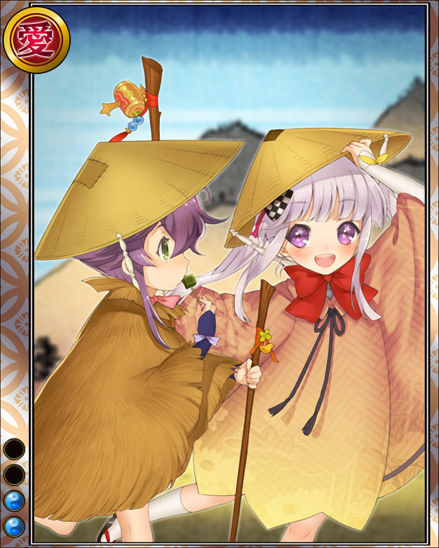 | コメント | さ「晴れたのじゃ!!次の美味い物を探すぞ!!」 み「その前に姥が餅を食べてやるです!!」 東海道を往く咲姫とみの吉、手に握るは道中の美味しい特産物。 2人は更なる美味を求め、突き進むのであった...... | |||