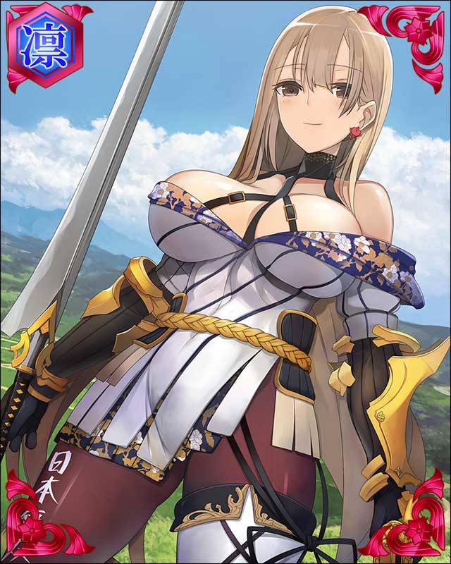 | コメント | 「勝手な事はしないで。アタシの言うことを聞いていればいいの」 アキの国の武将。毛利家に仕えてその財務を預かった金庫番。有能な毛利の重臣だったが、元就を若輩と侮り高慢なふるまいが多かった。 | |||