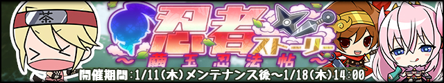 | 1月 | 1週 | 正月忍術競い | 【上忍】 | 体力 | 忍力 | 器用 | 回避 | 知識 | 忍気 | 3000P 愛:500 皆伝書【参】 |