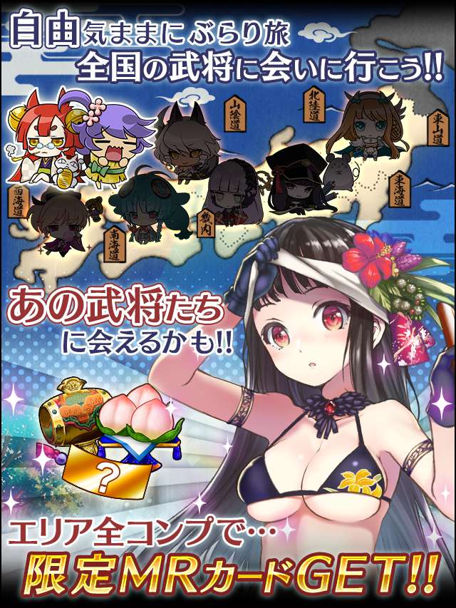 | 肥後国 | 安国寺恵瓊 | イベントガチャチケット(R以上確定)×1 | ヒゼンクマで水着買っちゃったし。かなり冒険しちゃったし。これで悩殺間違いなし♪ | |