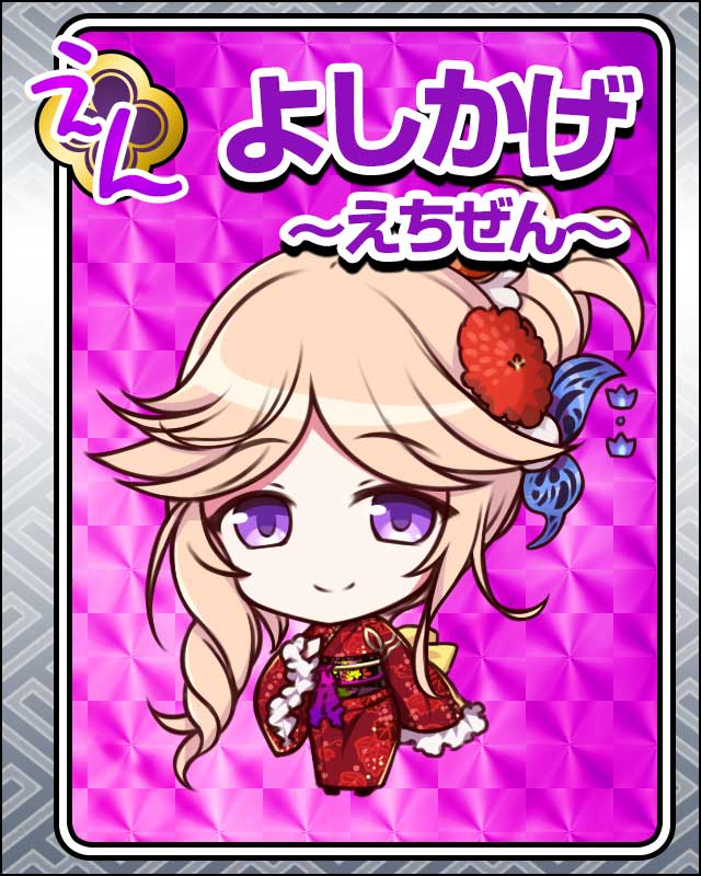 | 備考 | イベント「届かぬ天に手を伸べて」足利義昭シナリオ完全攻略報酬 装具「越前風鈴」「義昭の帯」「義景の浴衣」を装備すると画像が変化する | |||