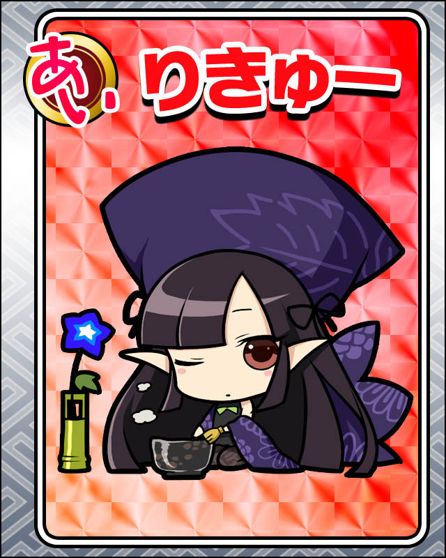 | 備考 | 入手:イベント『咲姫の野望!!』みにみに袋 愛R [茶聖]千利休 SR版とはフレームと背景が違う | |||