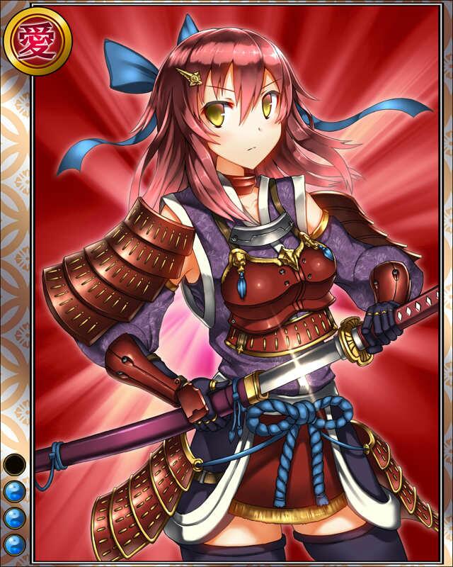 | コメント | 「吾の武はより高みへ……な」 イセ国の国司北畠家当主として、長野家との婚姻外交に九鬼家を 打倒してのシマ国征圧と北畠家の版図を広げていった。 |