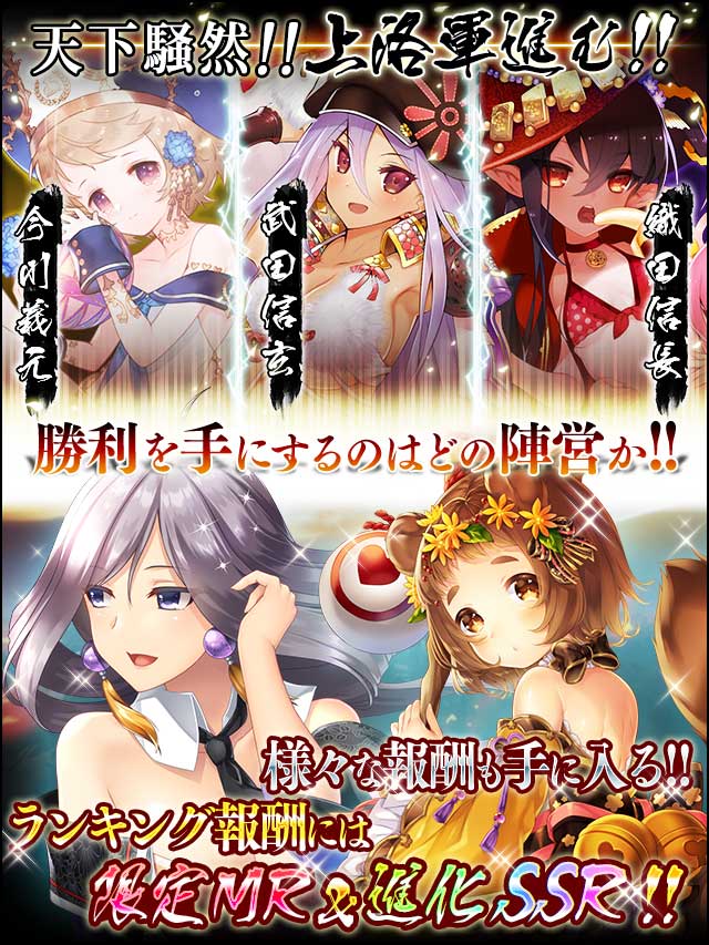 義元「機は熟したでありんす……いざ天下に号令するでありんす!!」 信玄「武田の力は天下一!!上洛だってしちゃうからね!!」 信長「ふははははは!!この状況どう切り抜けてくれよう!!」 みの吉「皆さん上洛を狙ってますね!!誰が夢を果たすか暑い戦いになりますよ!!」