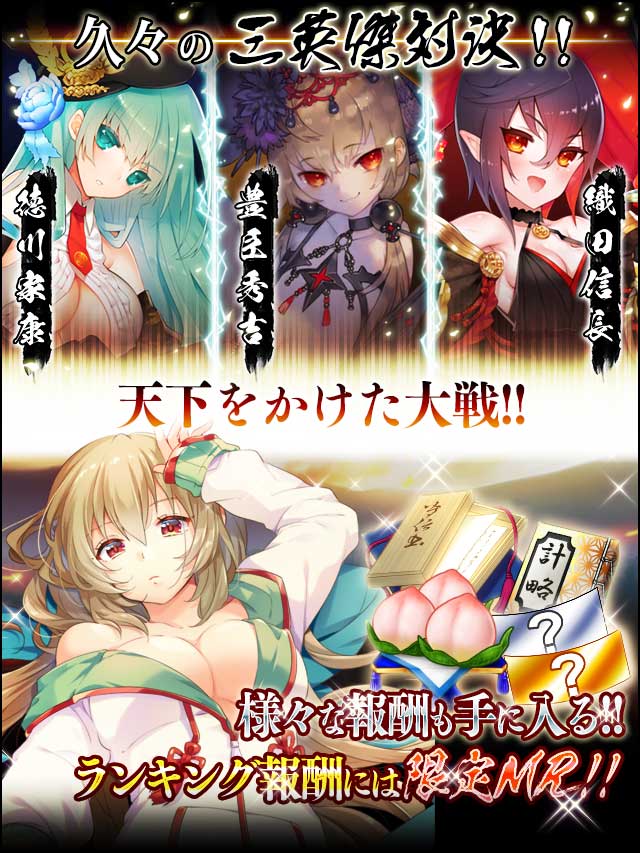 家康「またしても争乱の予感がする……天下を取っておくか」 信長「ふははっはは!!何度やっても結果は同じだぞ!!天下布武!!」 秀吉「むふふ……もう一回、浪花の夢を……」 みの吉「えいけつ!!久しぶりに三英傑のそろい踏みですよ!!これは!!」