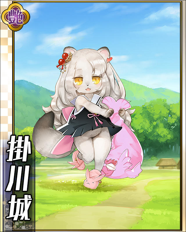 | コメント | 「きゃぷ、ぷっぷっぷ~(霧吹きを真似しているようだ……何でだろう??)」 今川家代々に仕える朝比奈家の居城。 主君今川氏真の危機の際、井戸より霧が噴き出しては危機を救ったと伝えられている。 |