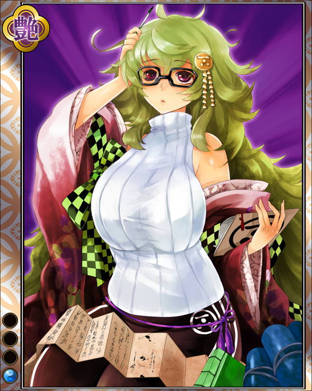 | コメント | 「謀事はぁ、頭と胸にぎっしりなんですぅ」 傑出した智略で知られるアキノ国の武将。 ありとあらゆる知識を用いては悉くに勝利、一大勢力となった。 |