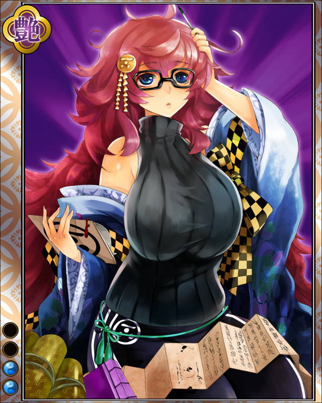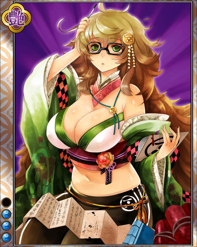 | コメント | 「うぅん、すこしぃ酔ってしまいましたぁ……」 傑出した智略で知られるアキノ国の武将。 ありとあらゆる知識を用いては悉くに勝利、一大勢力となった。 |