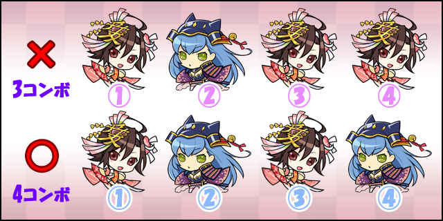 前衛、後衛それぞれで10分以内にコマンドをつなげるとコンボが発生! つなげていくと、バトルが有利になるぞ!積極的につなげていこう