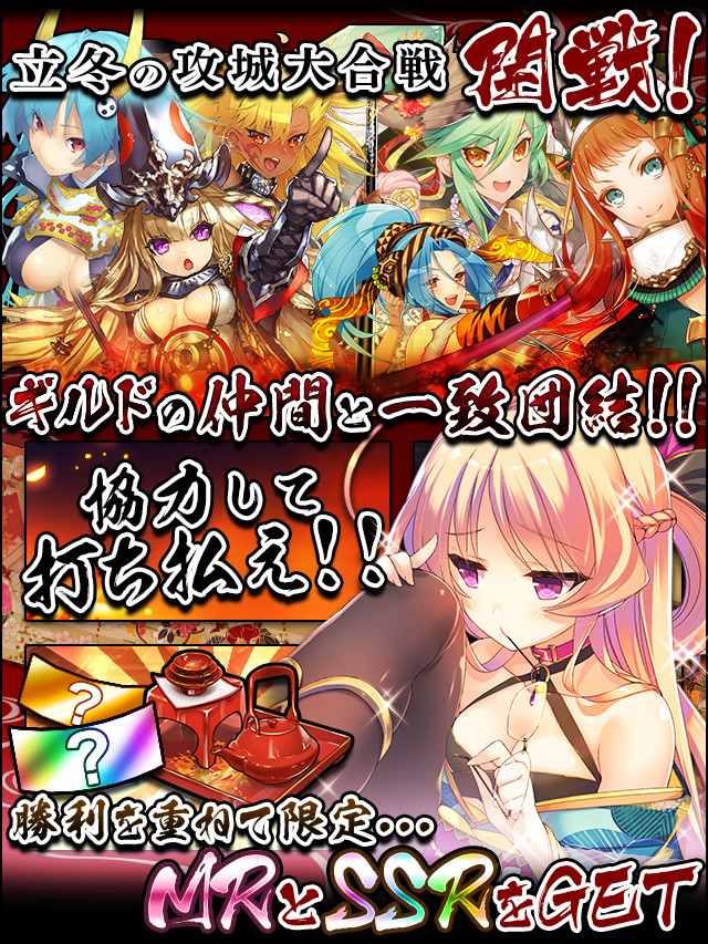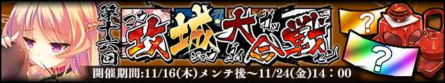 貢献度:50 のぼり×1 貢献度:100 剣術書【参】 貢献度:250 計略の秘伝書【四】 貢献度:500 個人用回復桃×1 貢献度:700 のぼり×1 貢献度:1000 Gガチャの種【四】 貢献度:1500 金の小槌ガチャチケット×1 貢献度:2000 のぼり×1 貢献度:3000 変化の巻物×1 貢献度:4000 皆伝書【参】 貢献度:5000 誓盃×1 、剣術書【五】