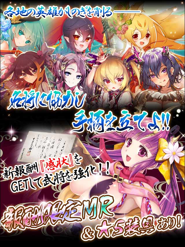 | 徳川秀忠 | 1 | 400000 | 200 | 剣術書【参】、 計略の秘伝書【参】、 Gガチャの種【参】、 両(1000)、 ガチャP(1000)、 攻撃・行動兵力100回復 | 50 | |