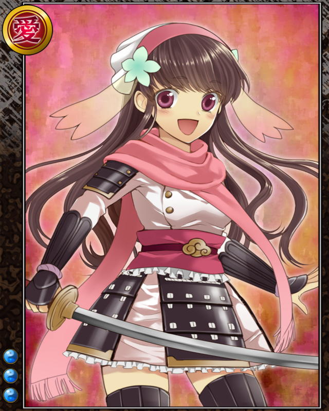 | コメント | 「ふんふん♪お花が綺麗だな♪」 スルガ国の生まれ。 楽天的な性格で、戦場にもピクニック気分で行く時がある。 | |||