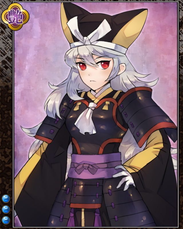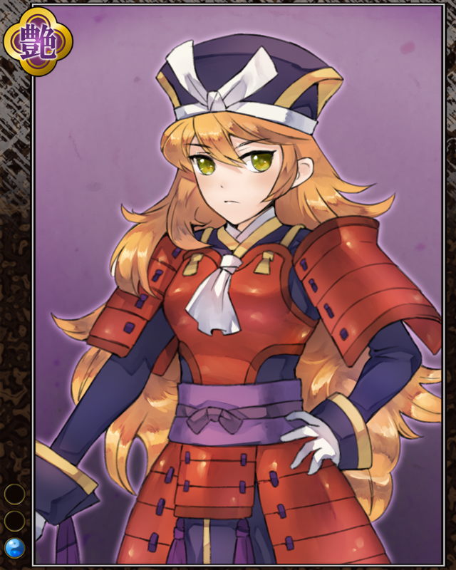 | コメント | 「御意!!我が主君の為に我は往くぞ!!」 先祖代々前田家に仕えている。 愛用の甲冑は親より譲り受けた物。 | |||
