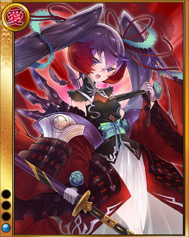 | 備考 | イベント「風雲!オケハザマ!!」撃破P個人ランキング1-500位報酬 進化には素材カード「宗三左文字」が必要 | |||
