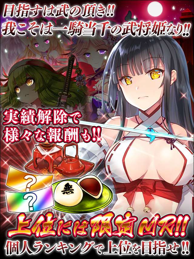 | 11 | 武神 | 合計で500回勝利する | イベントガチャチケット(SR以上確定) | 42 | 運も実力のうち | 連携計略を5つ発動して勝利する | 皆伝書(参) |