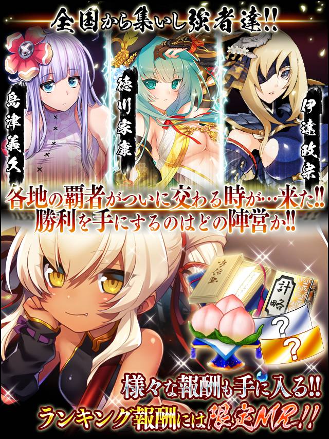 毎日の決戦で、勝利した陣営のプレイヤー全員に、以下の報酬を配布!! 個人用回復桃×1 きび団子×1 回復桃×1 咲姫の小槌×1 ※毎日の決戦ごとの個人陣営ポイントが「10000」以下のプレイヤーには、勝利陣営報酬は配布されませんので、ご注意ください。