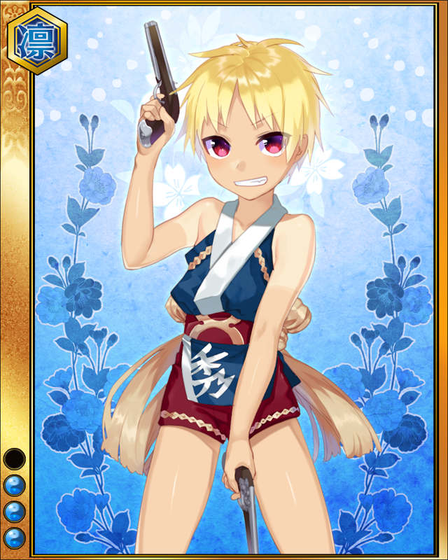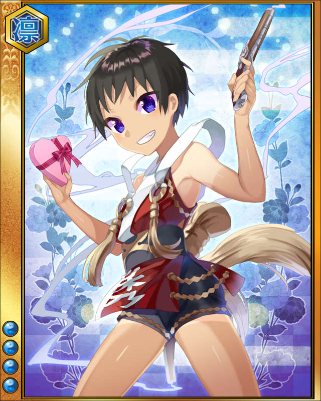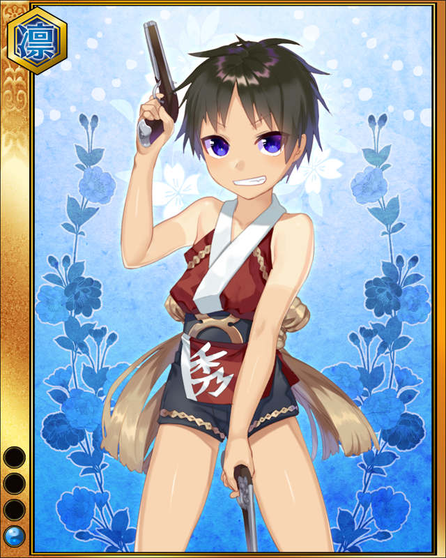 | コメント | 「へへっ!!毛利の隠し矢ってな!!」 毛利元就の九番目の子。 年の離れた姉隆景の養女となり、吉川広家と共に豊臣家臣従の証としてオオサカ城に住む事となる。 |