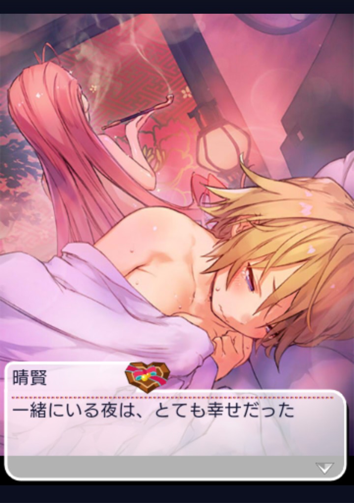 ※誓盃とは、愛情度が「満開」の武将姫に使うと、特別なストーリーシーンが開放されるアイテムです。