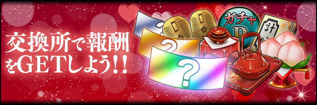 交換所には、イベントガチャチケットや誓盃など、嬉しい報酬が盛りだくさん!!