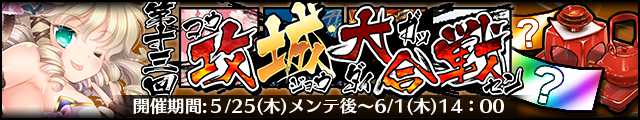貢献度:50 のぼり×1 貢献度:100 剣術書【参】 貢献度:250 計略の秘伝書【四】 貢献度:500 個人用回復桃×1 貢献度:700 のぼり×1 貢献度:1000 Gガチャの種【四】 貢献度:1500 金の小槌ガチャチケット×1 貢献度:2000 のぼり×1 貢献度:3000 変化の巻物×1 貢献度:4000 皆伝書【参】 貢献度:5000 誓盃×1 、剣術書【五】
