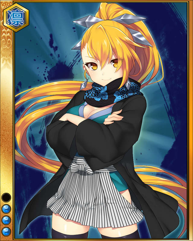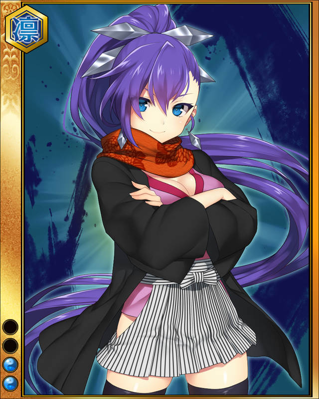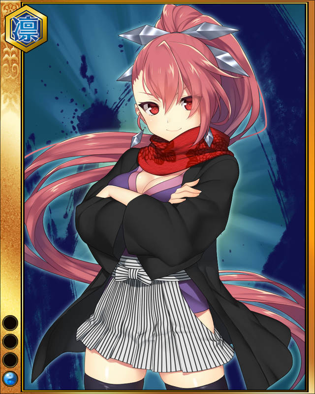 | コメント | 「わたしこそが最高の忍びというものだ!!」 伊賀忍頭領たる服部家、天正伊賀の乱で奮闘したとも伝えられる百地家。 しかし、残る伊賀三家藤林家の痕跡はほぼ伝えられていない。 これは影であり続ける忍びとして非常に優れていた証左とも言える。 |