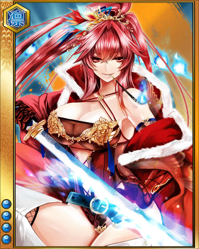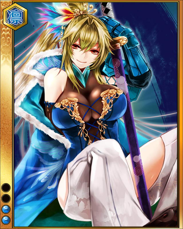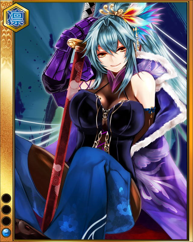 | 備考 | 武芸者討伐~カワナカジマ其の壱~の武芸者に対し攻撃力が3倍アップ 4MAX:攻6515 防7220 知6195 8max lv1/60 攻3976/6706 防4412/7432 知3786/6376 | |||