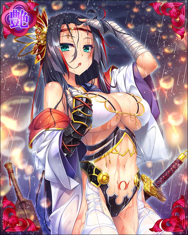 | コメント | 「逆巻く濁流!!ひと泳ぎするにちょうどいいでなぁ!!」 夜叉九朗と異名を取ったデワの俊英。 秀吉のオダワラ征伐に参陣するためやってきた盛安は豪雨で増水するオオイ川をものともせずに渡り切り、ずぶ濡れのまま秀吉の前に現れ豪胆さを認められた。 | |||