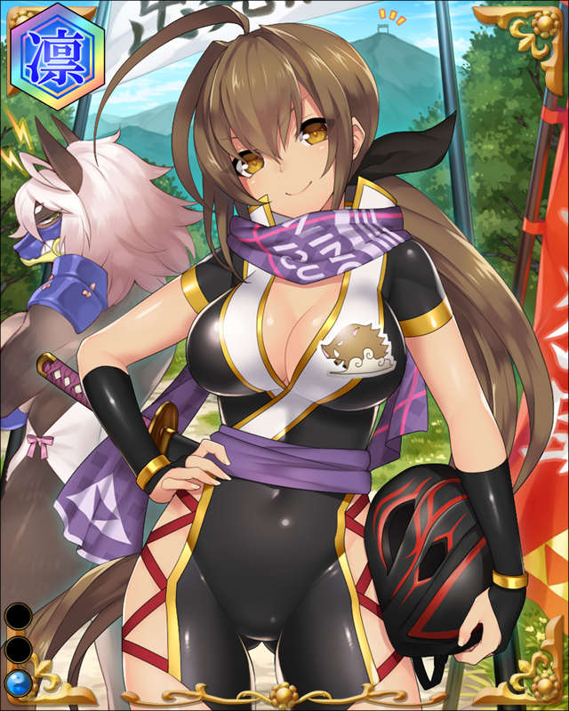 | コメント | 「きっしっし、走るぜ走るぜぇっ!!」 伝承によると風魔小太郎配下の忍び。 河越夜戦の際、偵察を追えた猪助であったが上杉憲政方の歩立(走る事)精妙なる忍びに追われたが脱出に成功、貴重な情報を北条に齎した。 |