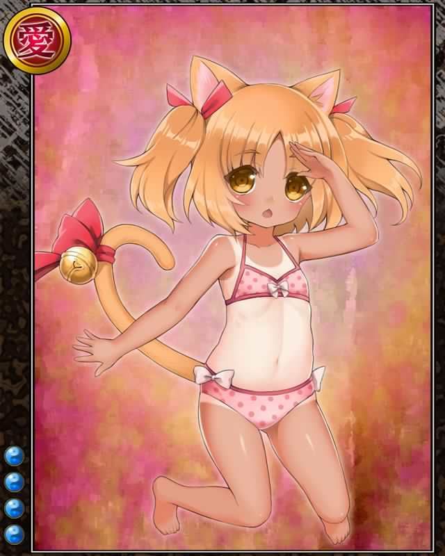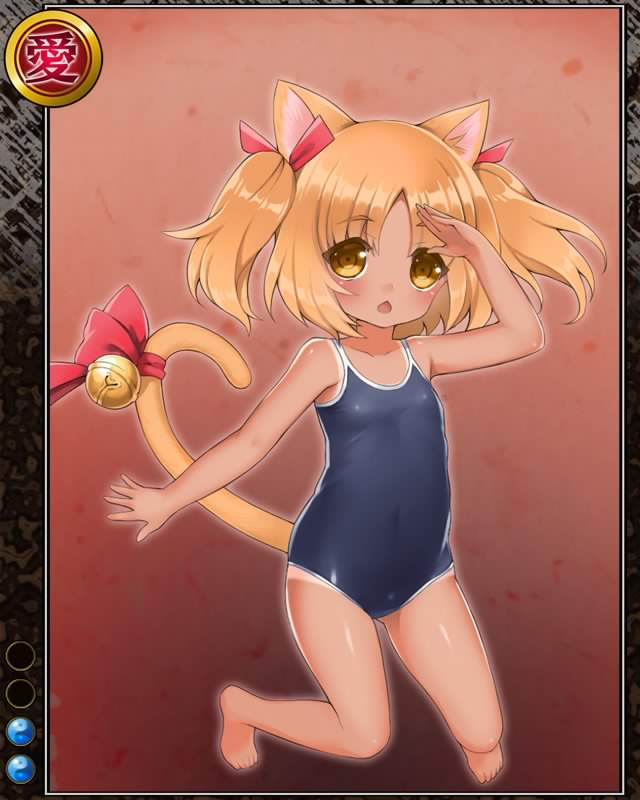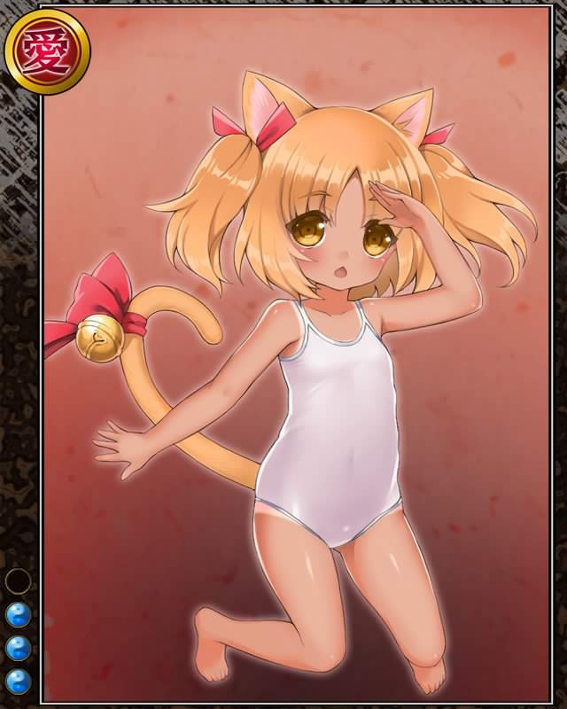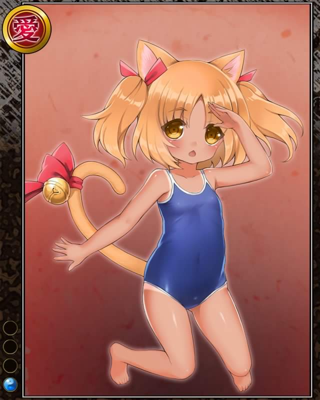 | コメント | 「だから~、泳ごうよ~、ね??」 ウエダ城の囲炉裏で使われる五徳を頭に冠し、火を起こしてくれる暖かい化け猫……なのだが今は夏なので五徳を被っていないと言う。 |